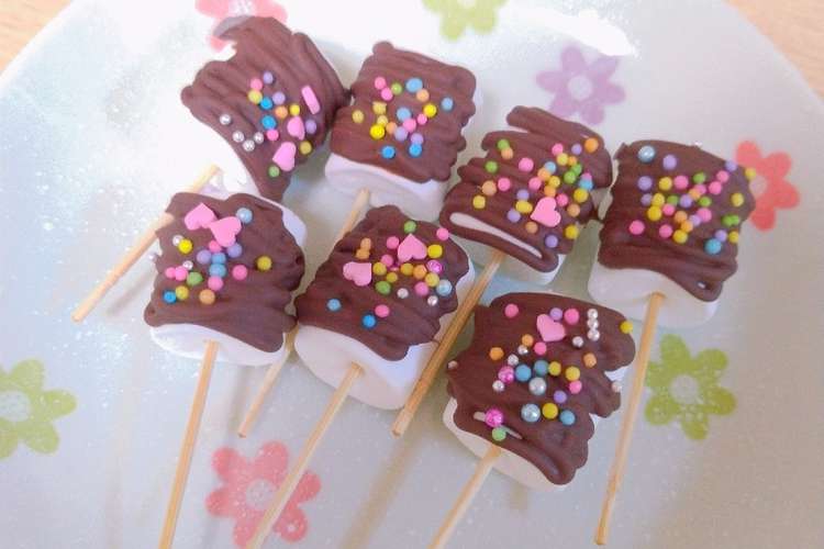 · マシュマロを使ったスイーツレシピはいかがでしたか? マシュマロを使うと簡単にお菓子作りが楽しめます。 調理次第でいろんな食感が楽しめるマシュマロ。紹介したレシピを色々試して、お好みの食感で楽しんでくださいね!0502 · こちらは 16本個分の材料 です。 ●マシュマロ:2袋(合わせて50個あればOK) ●板チョコ:3枚(ミルク1枚・ストロベリー1枚・ホワイト1枚) ●パフ:1袋 · 2 マシュマロを食べやすい大きさに切り、並べます。 上からもう1粒のチョコレートを刻んで振りかけます。 3 オーブントースターで約3分焼いたら出来上がり!